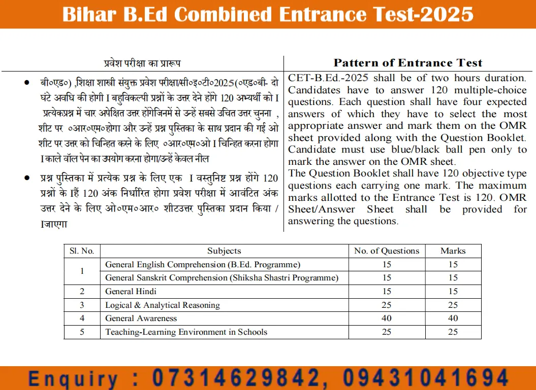 Bihar B.Ed Exam Pattern 2026