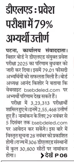 - Bihar DElEd Result 2025 (Out): रिजल्ट जारी, ऐसे देखें कट ऑफ, स्कोर कार्ड और डाउनलोड लिंक