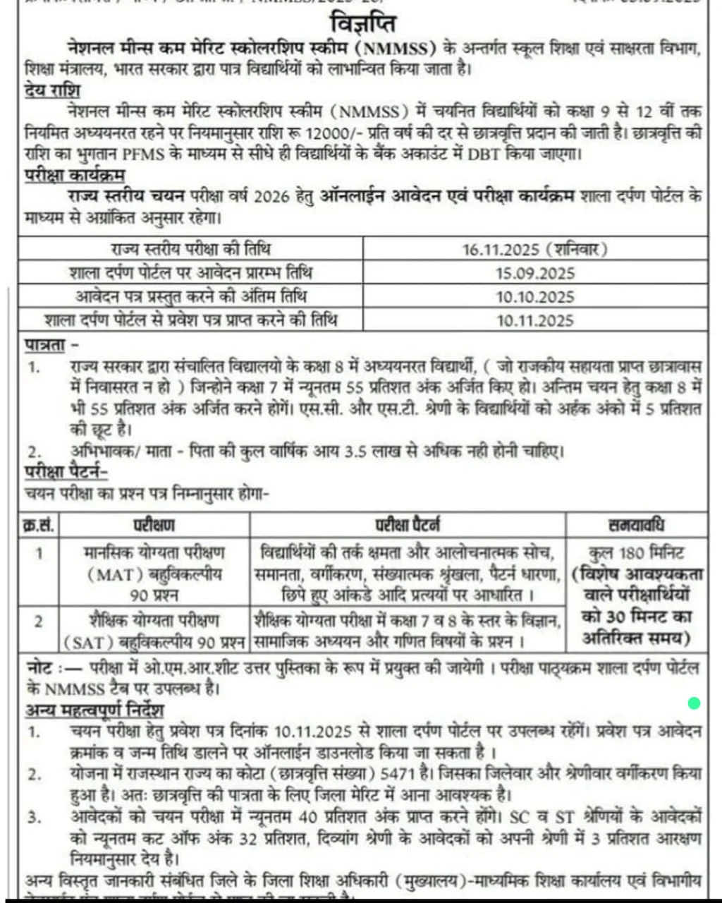 Ans:- 0 नवम्बर 2025 1. NMMSS Scholarship क्या है?