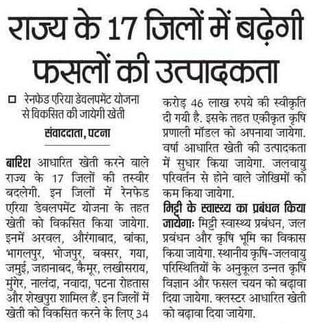 - यह योजना सिर्फ उन्हीं जिलों के किसानों के लिए है जहाँ खेती पूरी तरह से बारिश पर निर्भर रहती है। फिलहाल बिहार सरकार ने 17 जिलों में इस योजना को लागू करने की घोषणा की है।