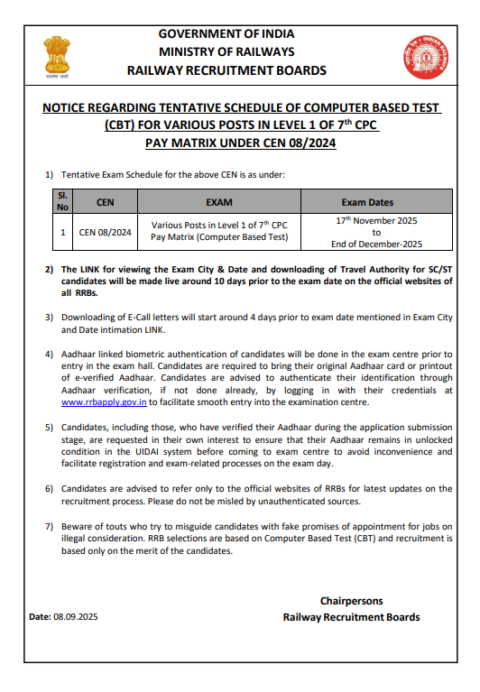RRB Group D Mock Test 2025 – महत्वपूर्ण तिथियां