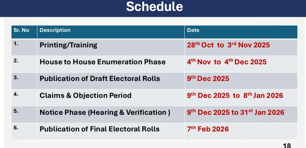 | घर-घर गणना चरण | 4 नवम्बर – 4 दिसम्बर 2025 |